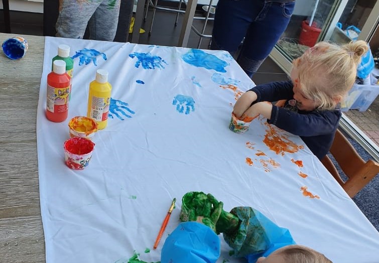 Ons vingerverffeestje resulteerde in drie gekleurde monsters...