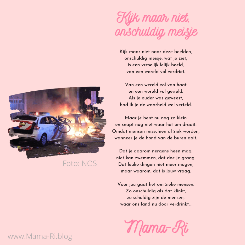 Tijdens de Coronarellen in januari schreef ik dit gedicht, maar na de rellen van gisteravond is dit gedicht helaas weer oh zo actueel…